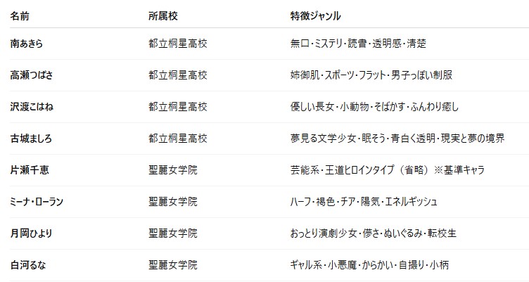 それぞれ「都立桐星高校」と「聖麗女学院」に所属していて、