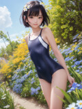 千恵ちゃんのスク水はリクエストいただいたものなのですが、以前よりスク水は生成に挑戦していて挫折中なものでした。